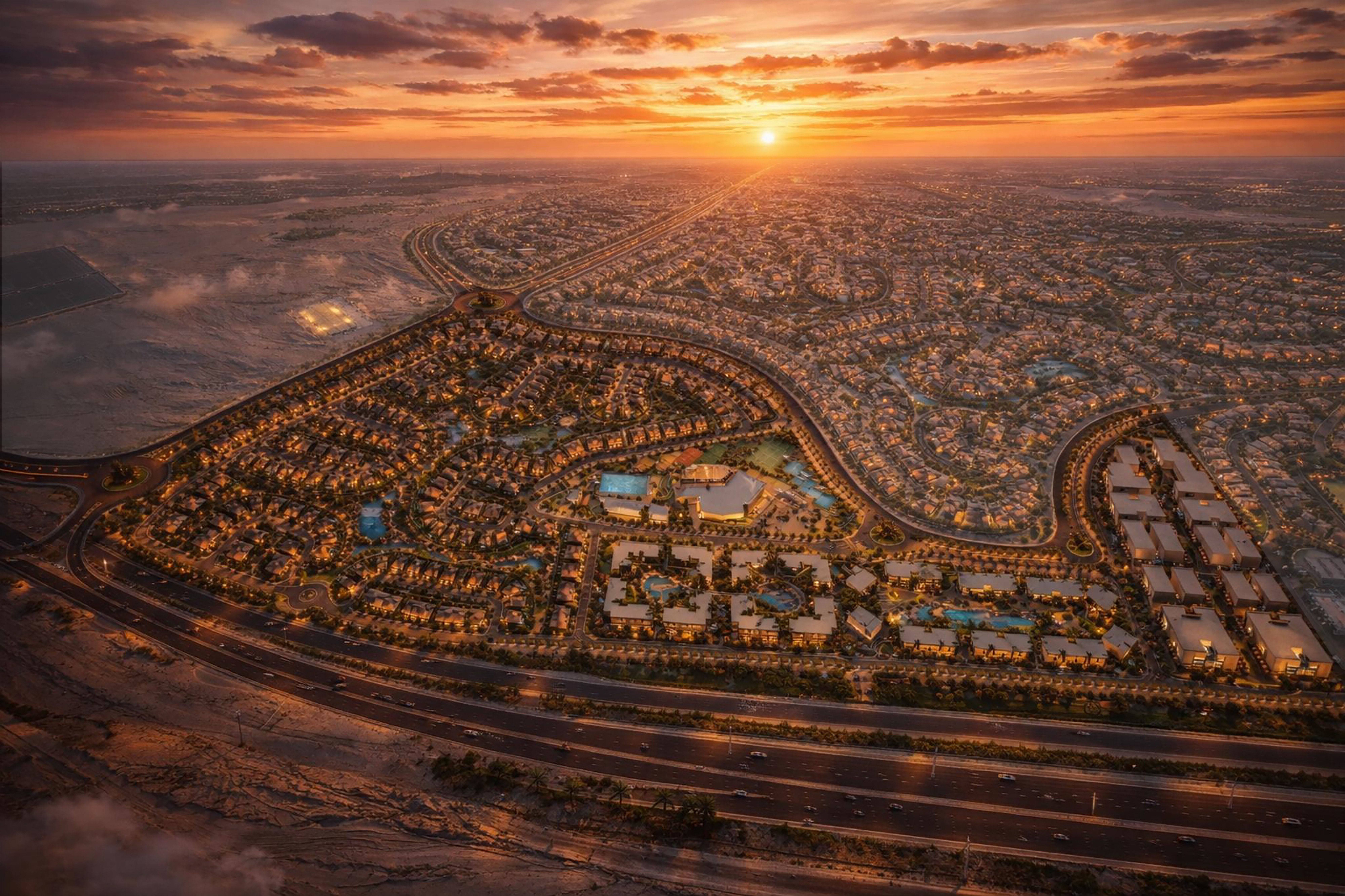 The Hillage sits directly on the CairoβAlexandria Desert Road β steps from SODIC West, Beverly Hills, Allegria, Walk of Cairo, and Al Ahly Club. One of Sheikh Zayed's highest-demand locations.